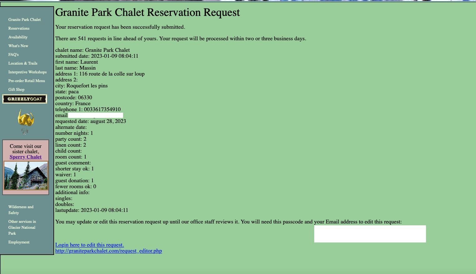 Lorsque j’ai validé la demande il y avait 541 demandes avant la nôtre, mais la bonne surprise arriva le 9 janvier 2023 avec la confirmation de notre réservation ! 👌
