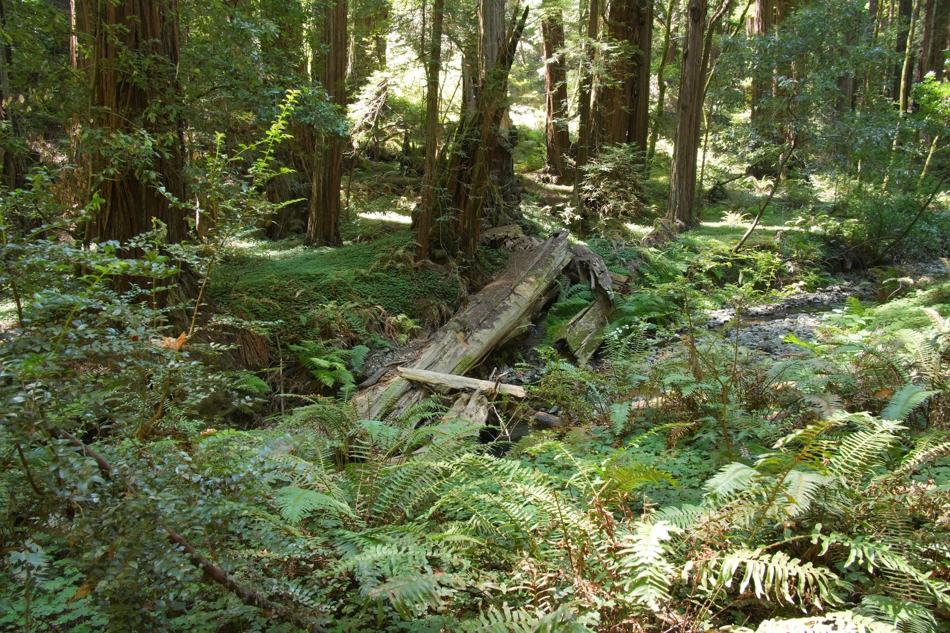 On lit un peu partout que vous traversez une forêt de Séquoias mais il n'en est rien ! Pour mémoire, le Séquoia pousse à plus de 1 000 mètres d'altitude. Ici, on a à faire à des Redwoods, certes de la même famille que les Séquoias (comme son nom latin l'indique : sequoia sempervirens)