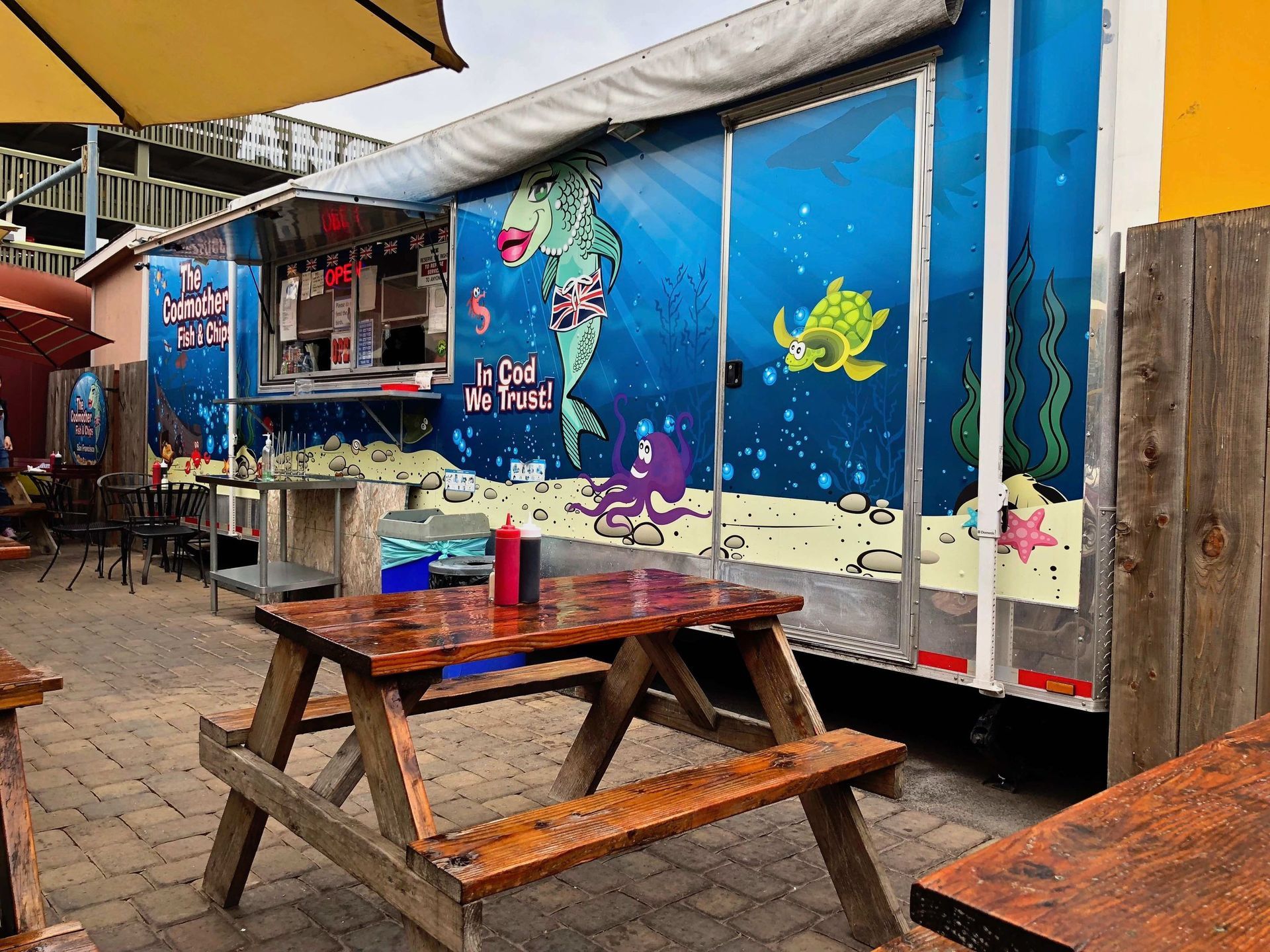 Enfin, on s'arrêtera dans un CVS chercher une bonne petite bouteille de vin pour terminer notre soirée à l'hôtel avec un emporté de Fish and Chips, chez le meilleur de SF parait-il, le Codmother Fish and Chips, accueil sympa, service rapide et c'est fabuleusement bon !! 👍 Noté 5 étoiles dans notre revue restaurants.