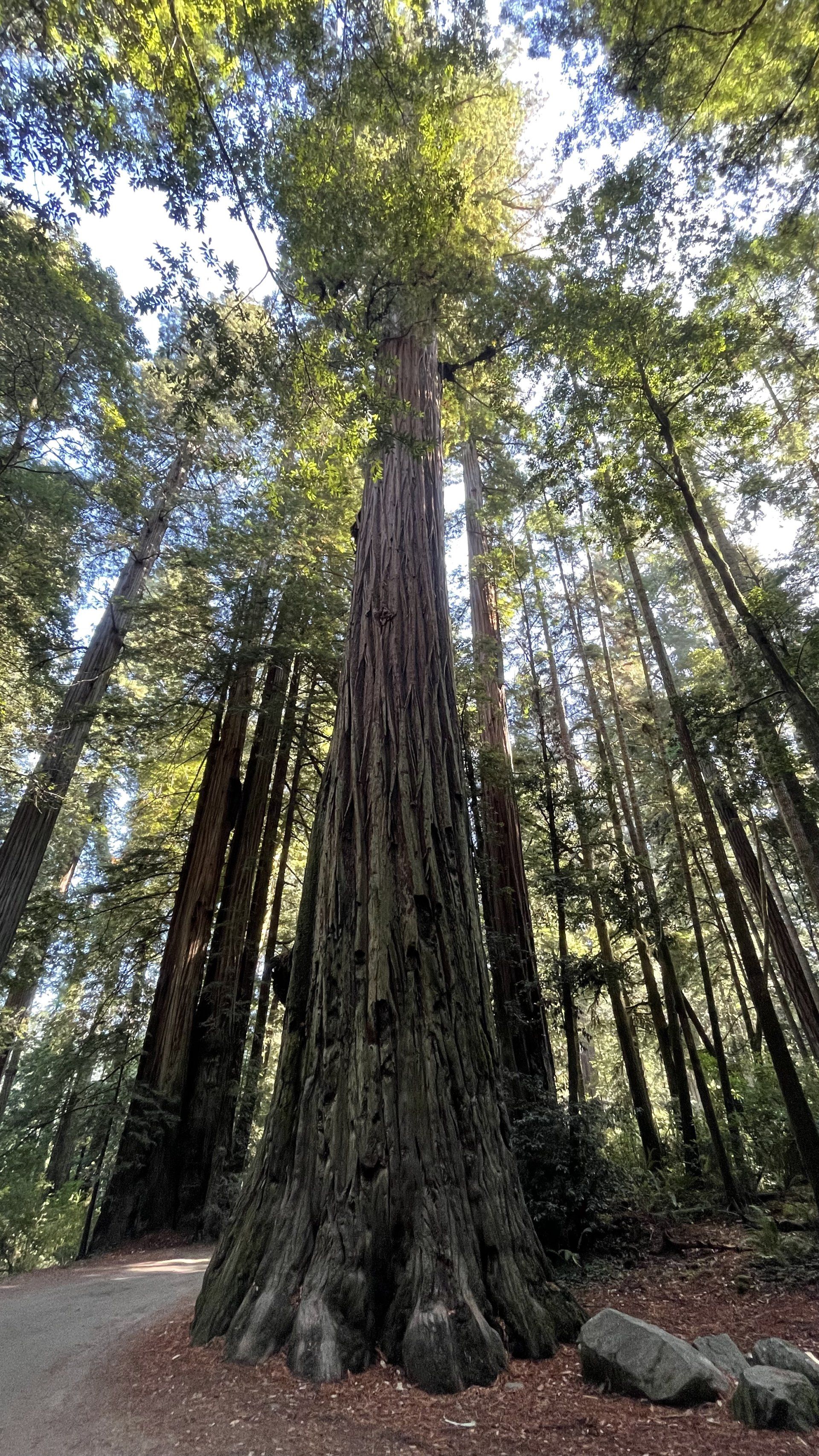 Cette Avenue of the Giants nous amène à Jedediah Smith Redwoods State Park et nous roulons sur la très étroite Howland Hill Road sur 6 miles. C'est un spectacle digne des contes féériques où l'ambiance est particulière et vous avez l'impression de soudain voir sortir de nulle part de petites fées d'un rayon de soleil qui traverse les arbres ! Non, nous n'avions pas fumé de la weed 😂😂😂 même en passant la frontière Oregon/Californie c'est la première odeur qui vient vous piquer le nez !! La vidéo (en lien en bas de cette page) donne un très bel aperçu de l'étroitesse de la route...