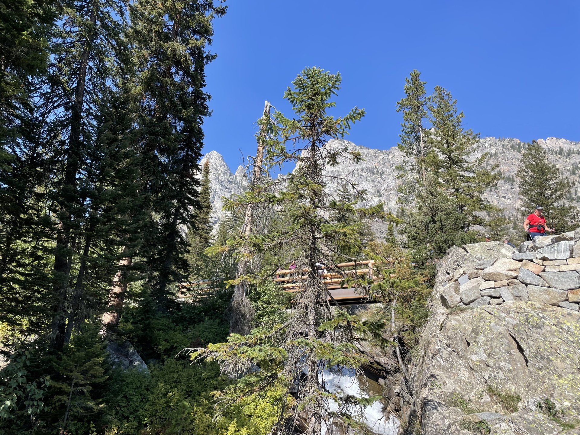 Nous avons fait les Hidden Falls et Inspiration Point Trails où la vue est juste magnifique et pique-niqué dans un coin tranquille près de l'Inspiration Point. L'accès par bateau d'une rive à l'autre du Jenny Lake coûte 18$ par personne (de 12 à 61 ans). La réservation des places n'est pas possible mais il y a des navettes tous les 1/4 d'heure environ. Plus d'infos : Jenny Lake Boating.