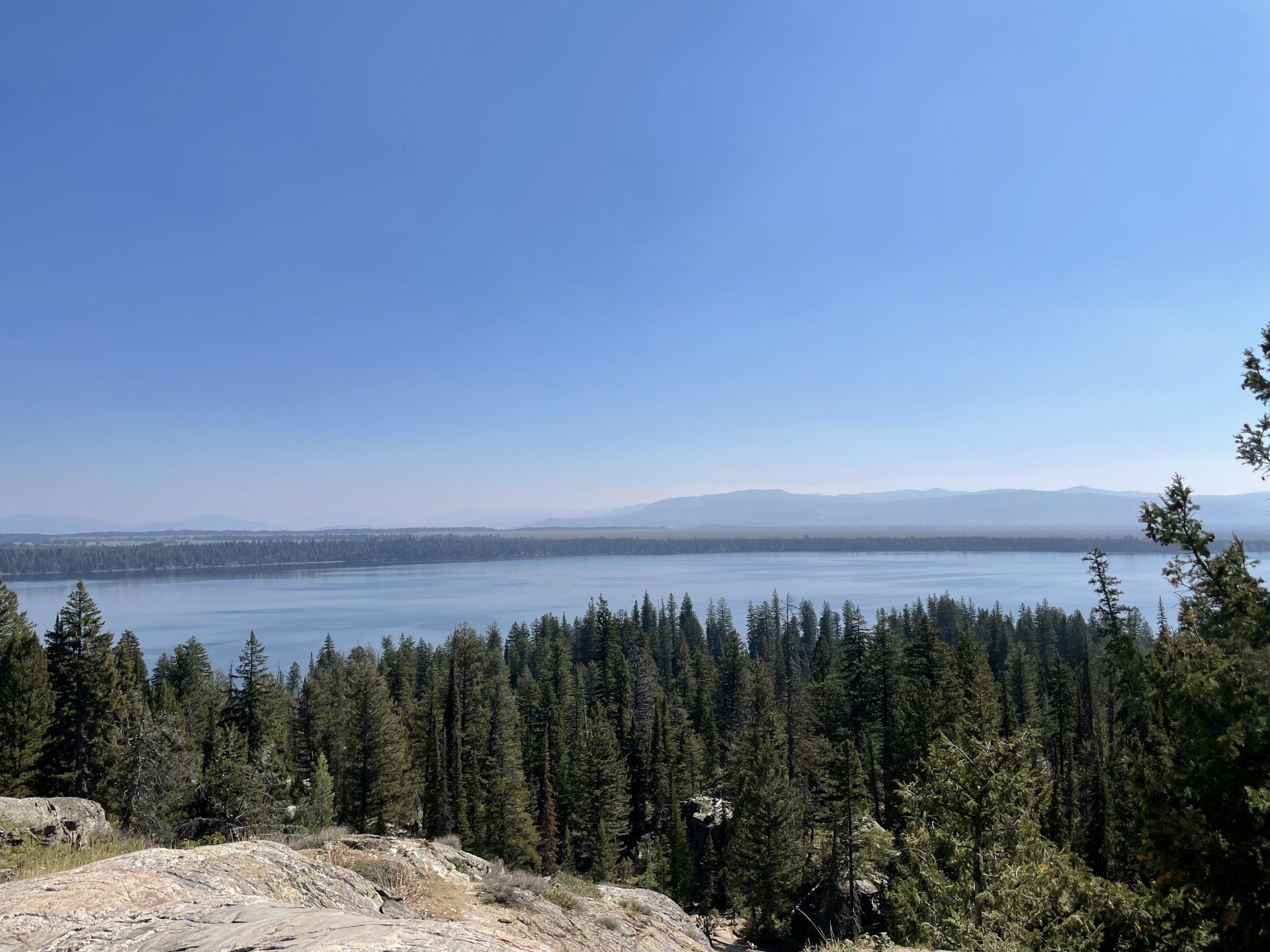 De la rive Est, les visiteurs ont une vue sur la montagne Teewinot, le mont St. John et le canyon Cascade. De la rive Ouest, les visiteurs peuvent regarder en arrière sur le lac vers la vallée de Jackson Hole.