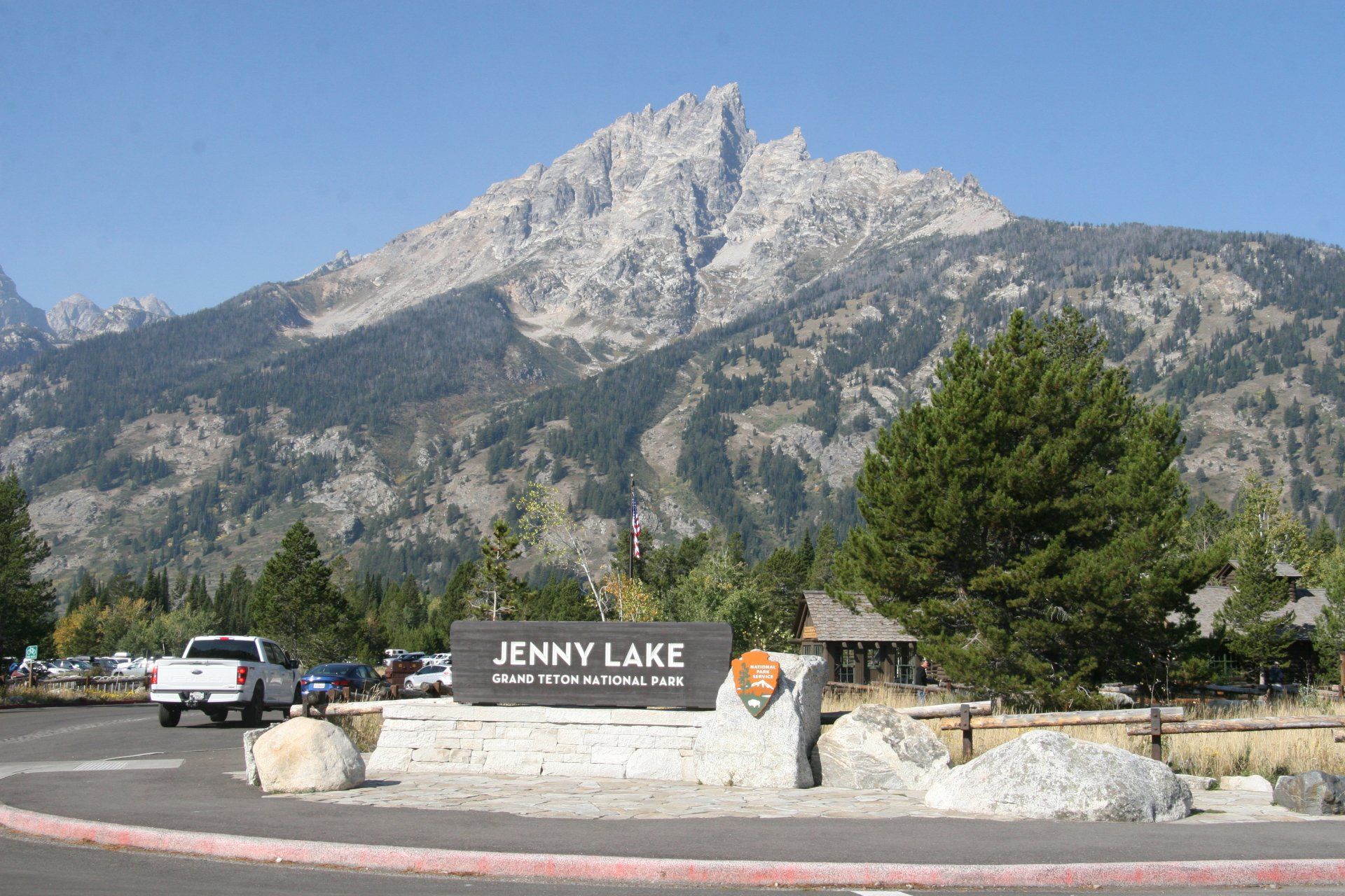 Après cette belle journée au Taggart Lake, nous prenons la direction du Jenny Lake, l'un des lieux les plus visités dans le Grand Teton National Park. C'est pour cette raison qu'il faut y arriver de bonne heure car le parking est vite complet, surtout en été. Il y a un Visitor Center dont le bâtiment original fût construit en 1920 puis rénové en 2019. Accès par la route (fermée de Novembre à Mai) Teton Park Road (Moose).