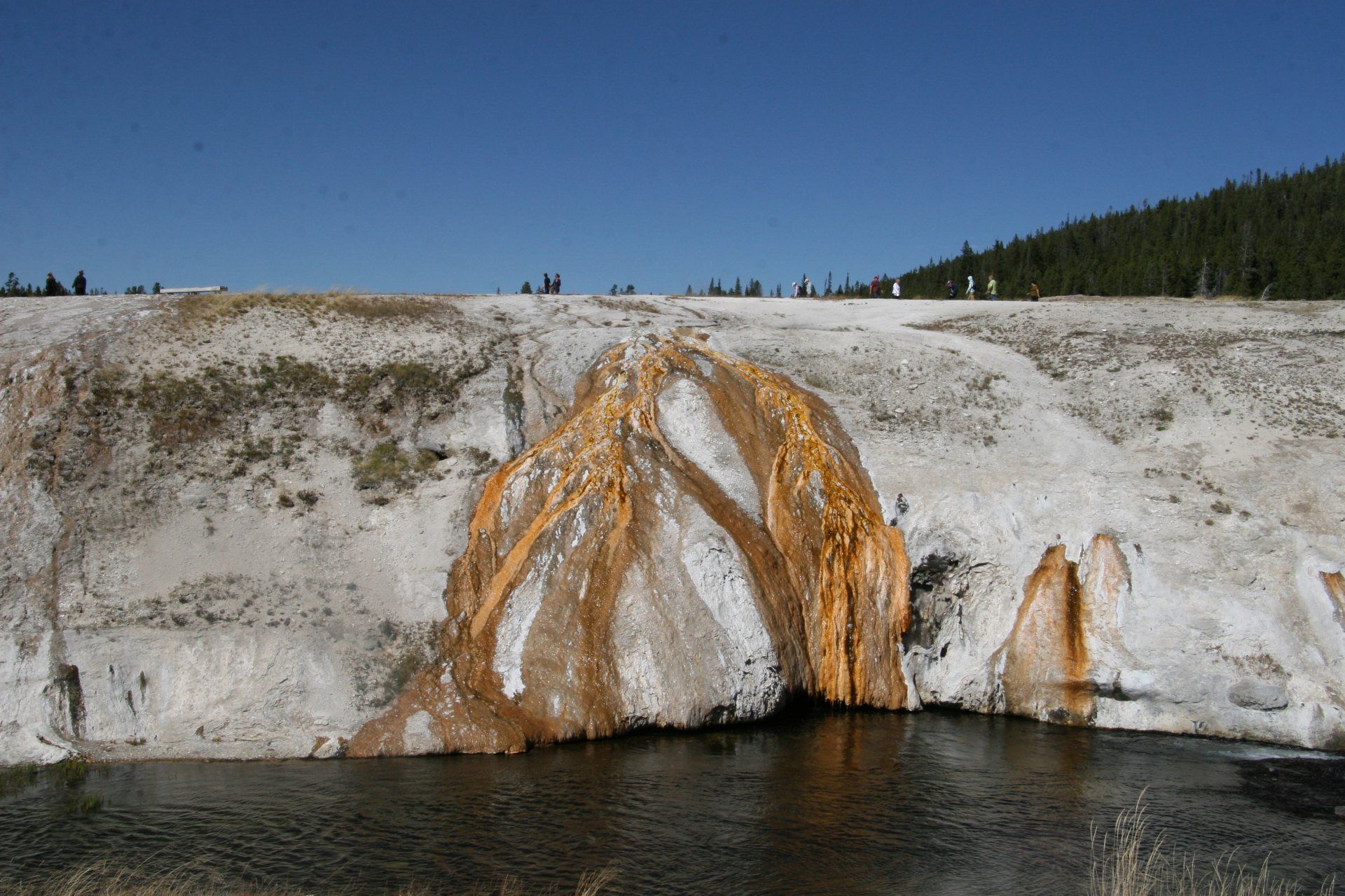 Sans surprise, de nombreux geysers, sources chaudes, mudpots et fumerolles du parc se trouvent également à proximité ou dans la caldeira.