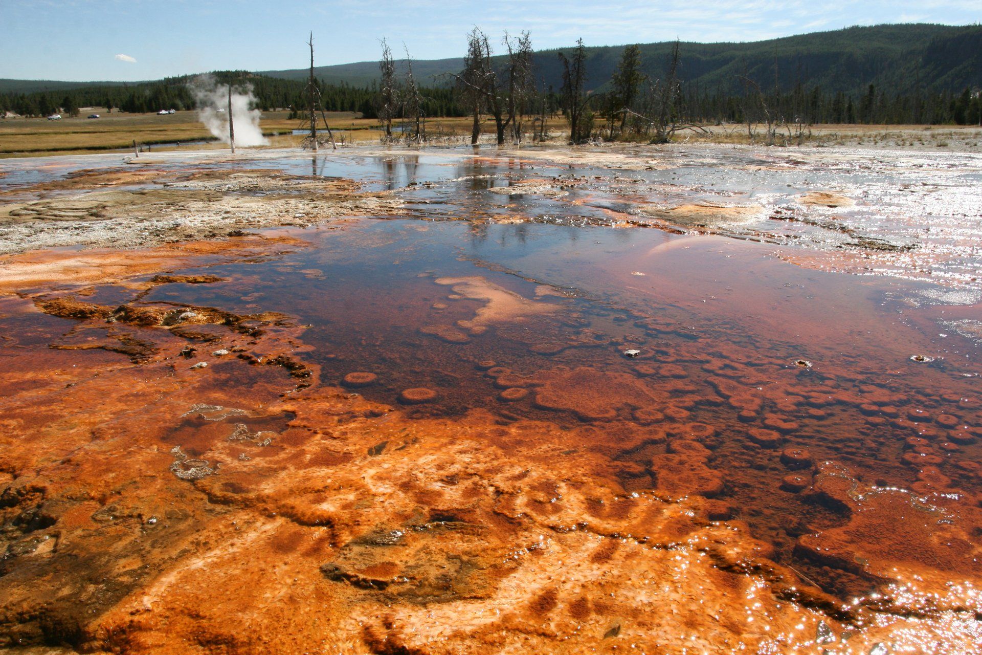 Pas très loin du Upper Basin, le Biscuit Basin, un sentier type boucle de 1,3 km, aménagé pour les fauteuils roulants également, on y découvre toutes sortes de bassins bouillonnants, les uns étant aussi spectaculaires que les autres...